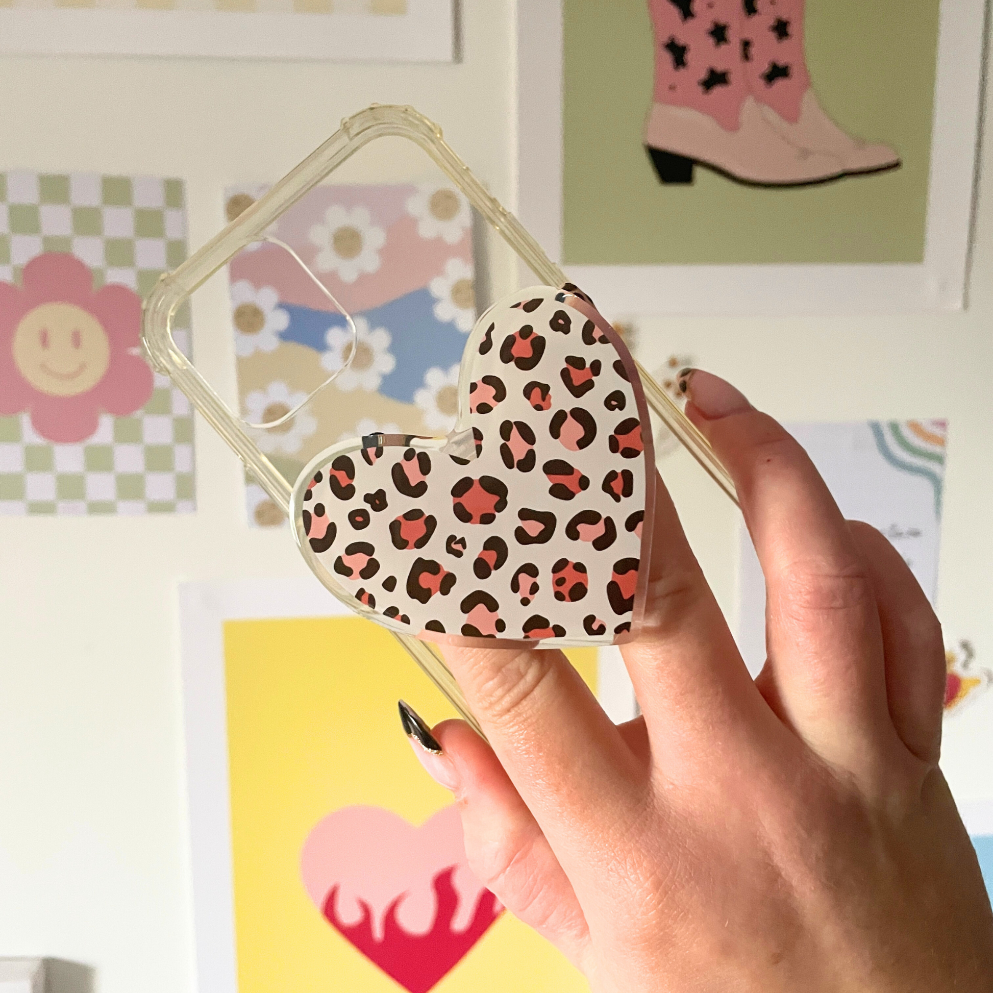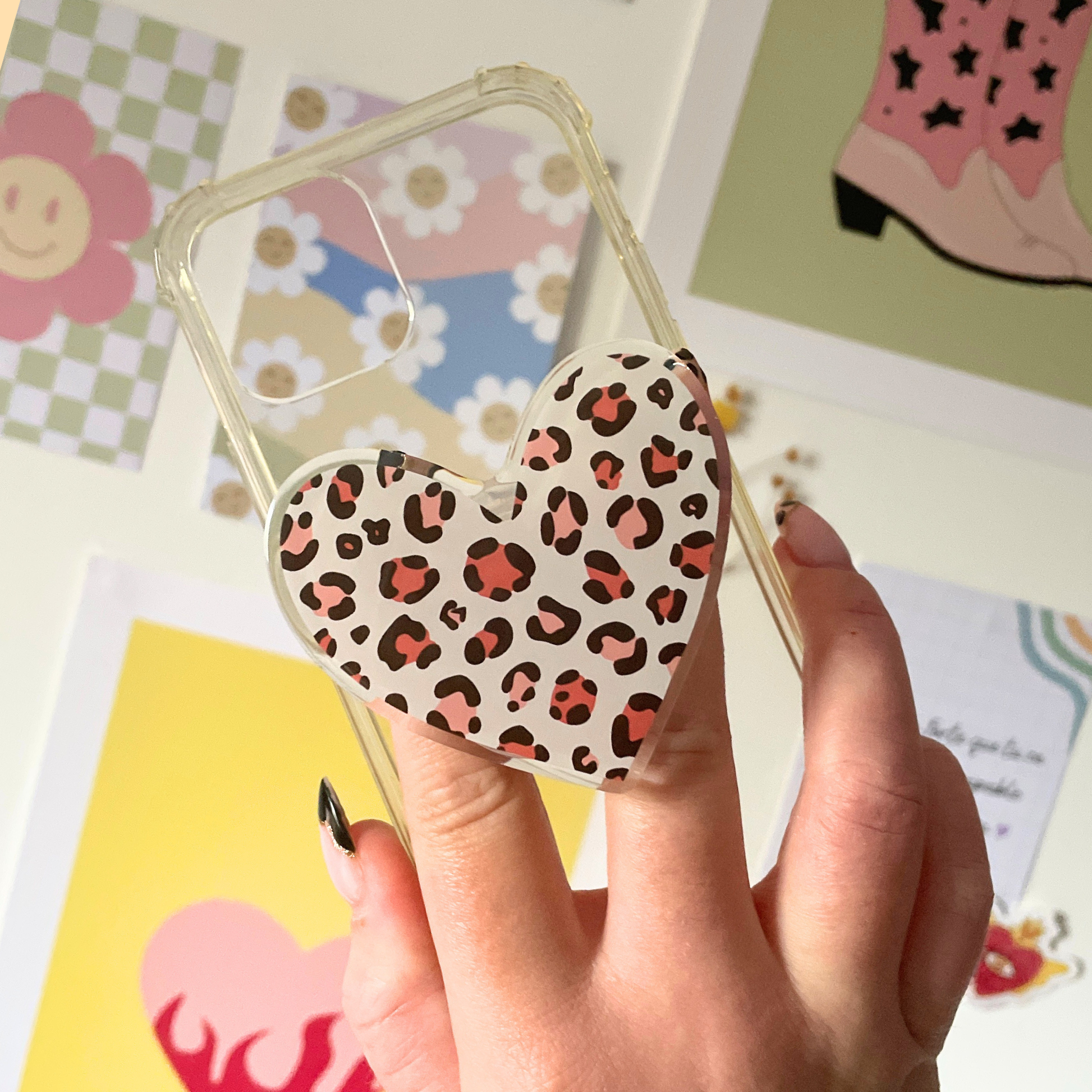 Ce Phone Grip cœur léopard automnal allie praticité et style, parfait pour celles et ceux qui veulent personnaliser leur téléphone avec audace et originalité 🍁💖