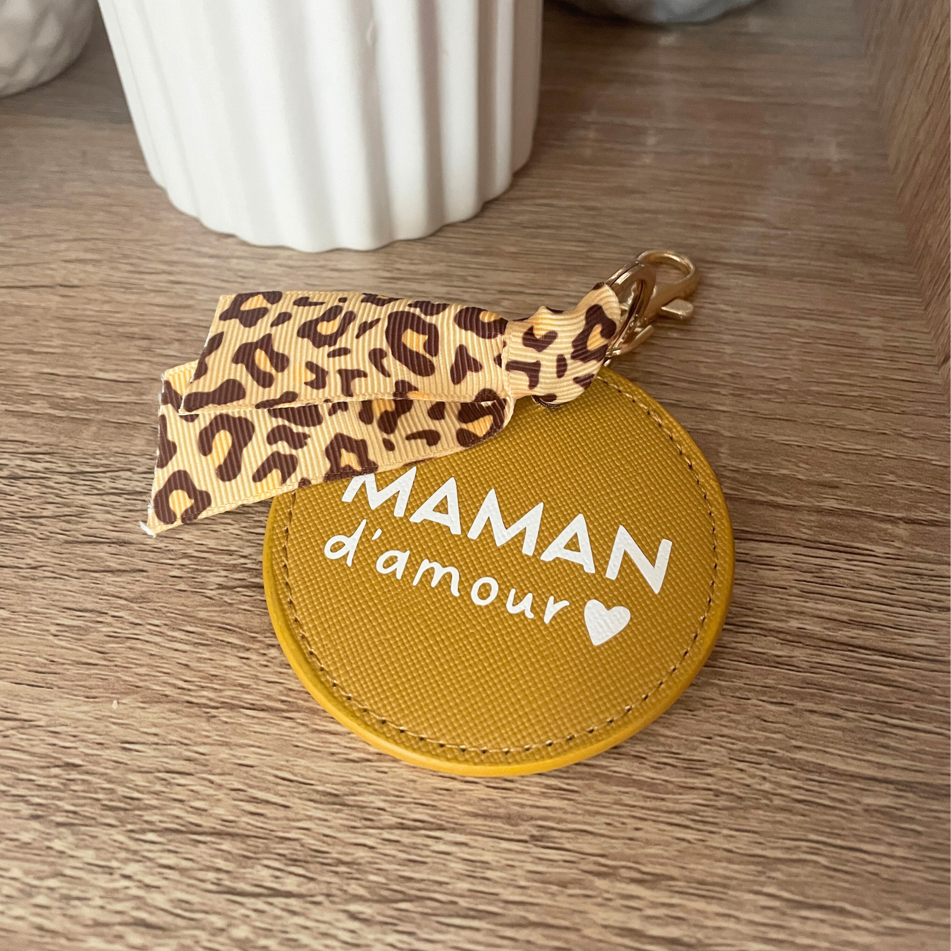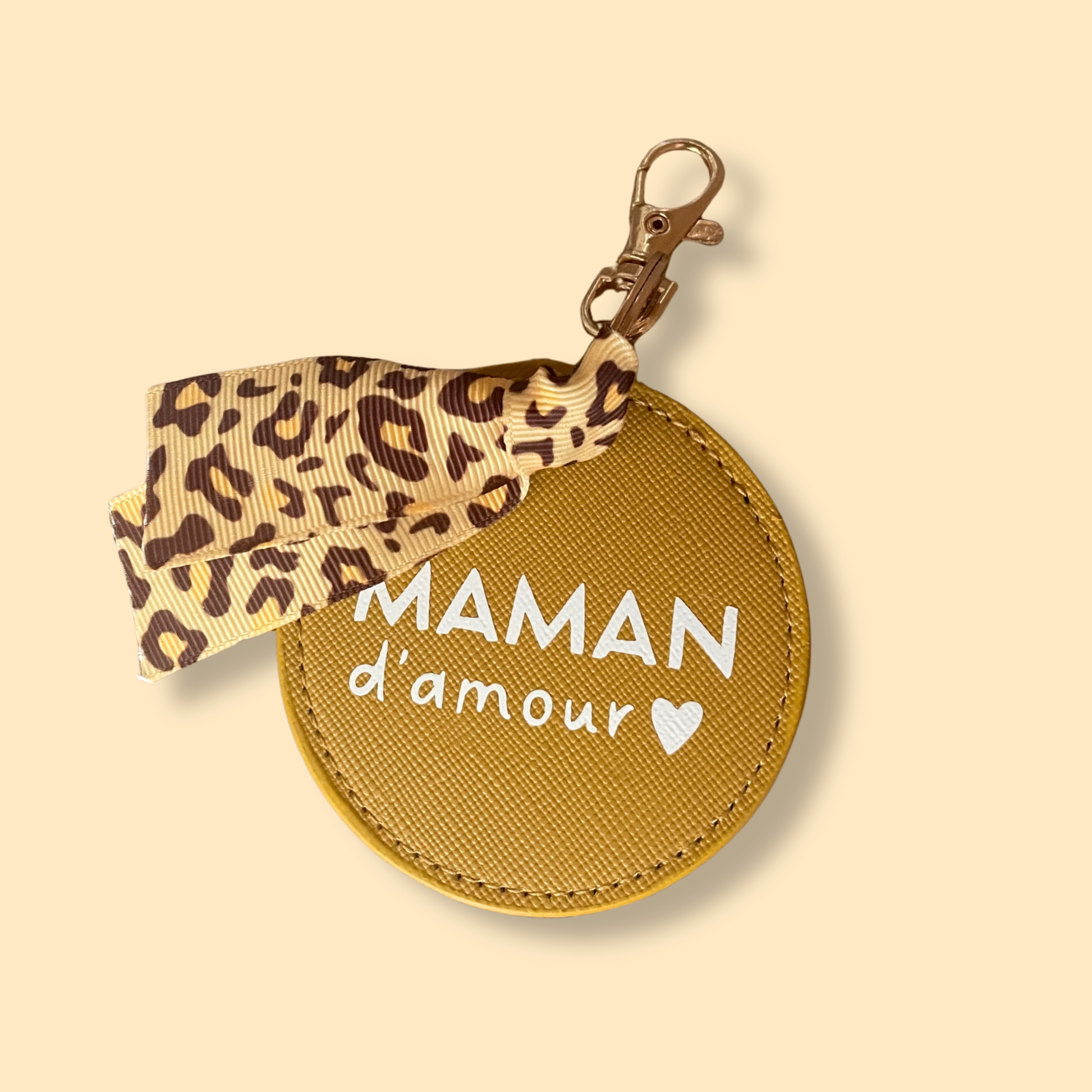 Porte-clé simili cuir MOUTARDE - ruban léopard - personnalisé