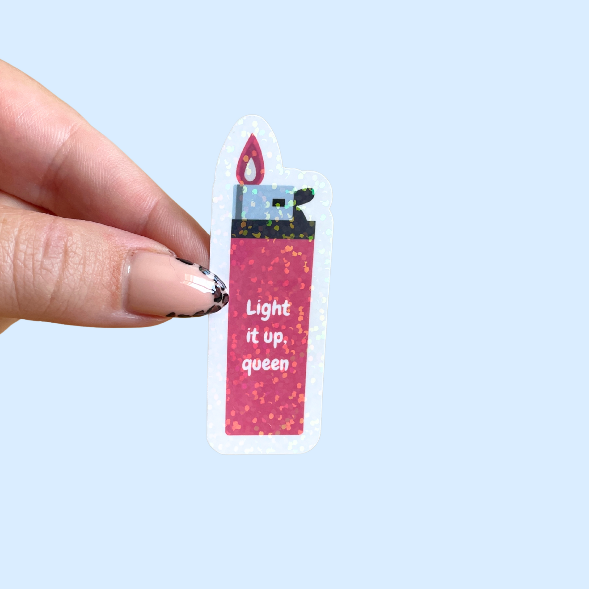 Ce sticker briquet rose « Light it up, Queen » est dessiné, imprimé puis découpé avec soin dans mon atelier en France. Son design féminin et audacieux apporte une touche d’attitude et de pouvoir. Effet holographique à paillettes
